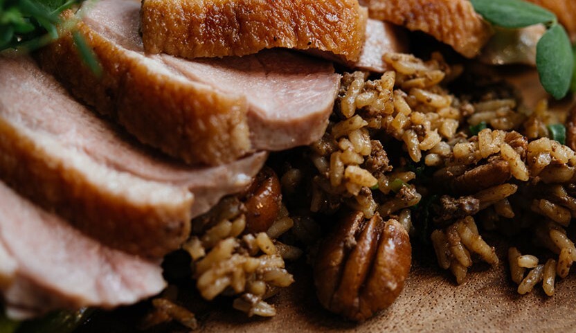 Justin Girouard's Roasted Duck Breast with Pecan Dirty Rice