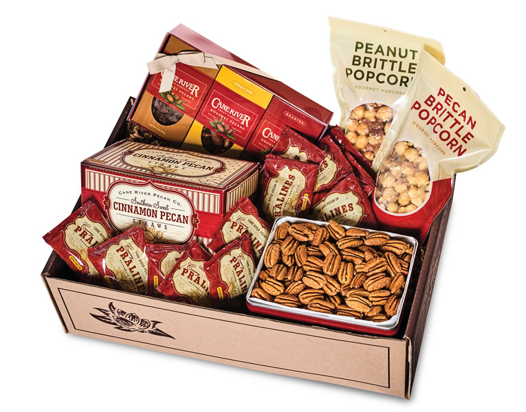 - 28 oz. of premium Natural Cane River Pecans in signature Cane River Gift Tin